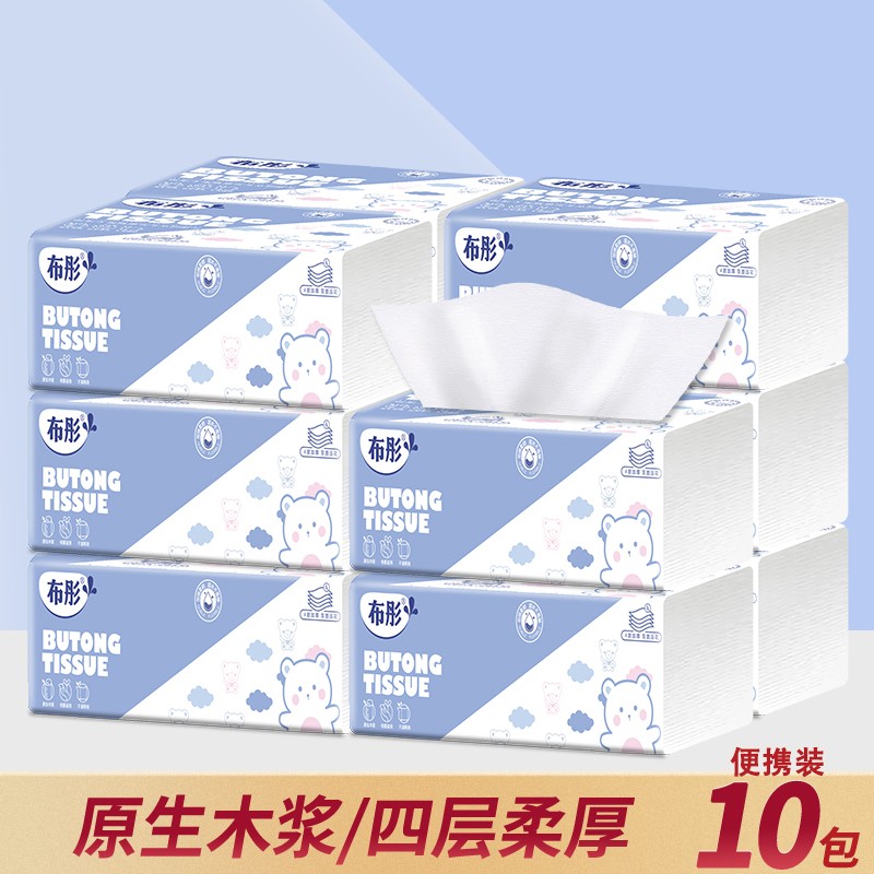 【四层加厚 一箱用半年】布彤干湿两用四层加厚纯木浆抽纸40包/箱 便携式小包装
